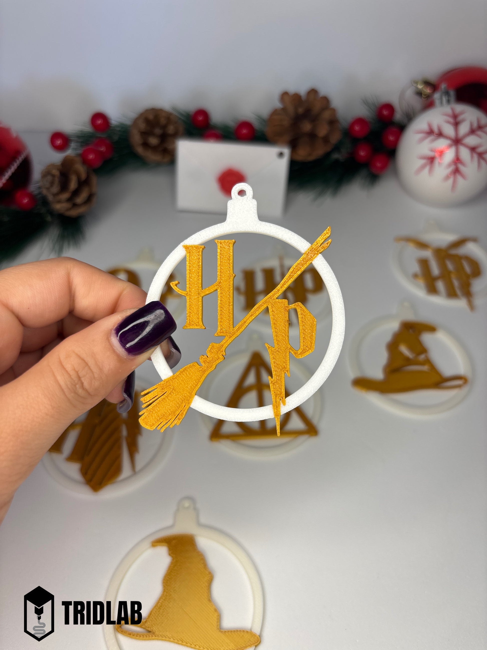 Transforme seu Natal em um verdadeiro Natal bruxo com esse incrível pack de 11 enfeites temáticos de Harry Potter, feitos com impressão 3D PLA de alta qualidade pela TRIDLAB! Cada peça traz um símbolo marcante do universo mágico, perfeito para fãs da saga que querem um toque de Hogwarts em sua decoração. ⚡